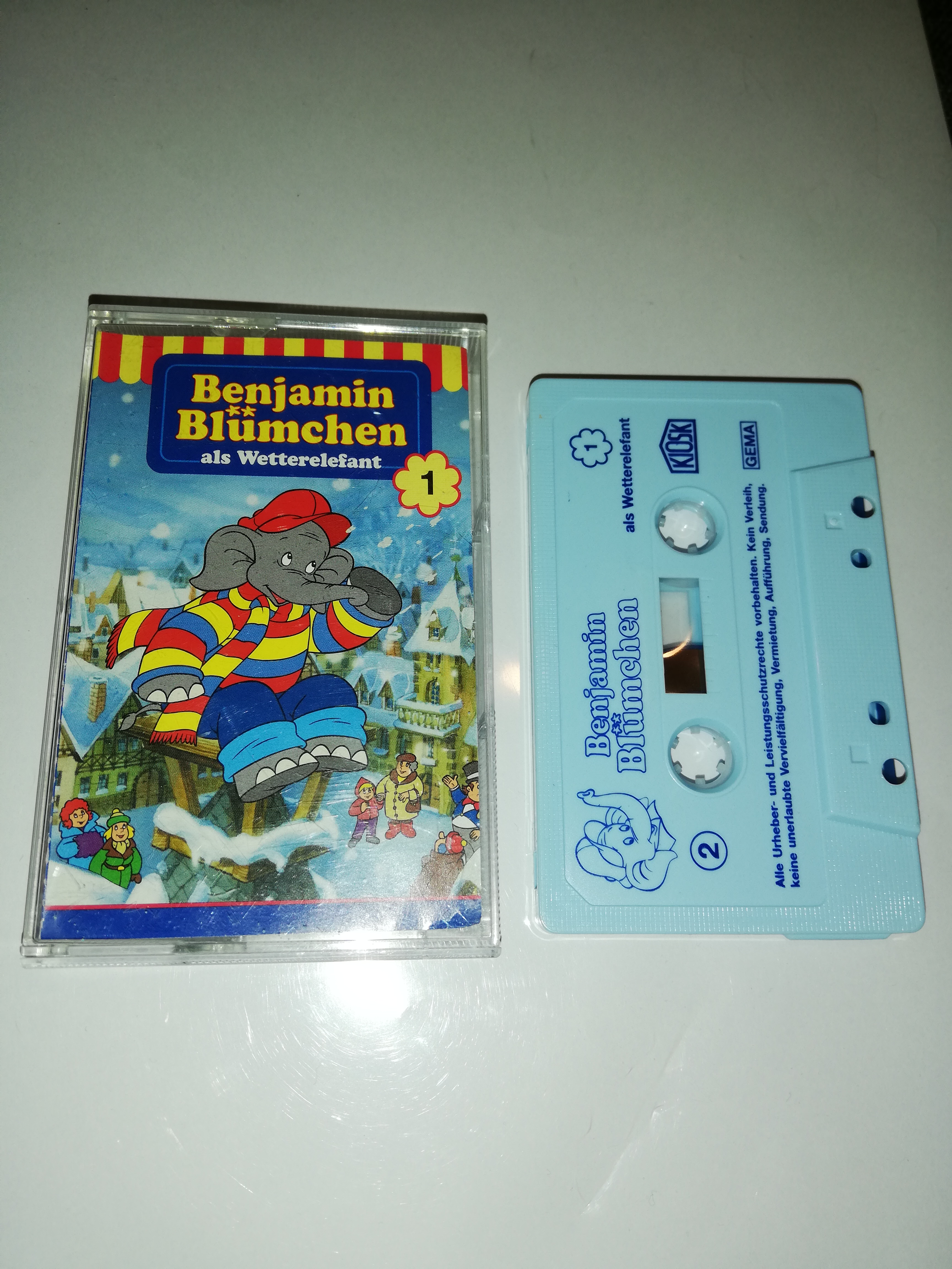 Benjamin Blümchen Folge 1als Wetterelefant Weiß mit Blauen Druck 4.27501