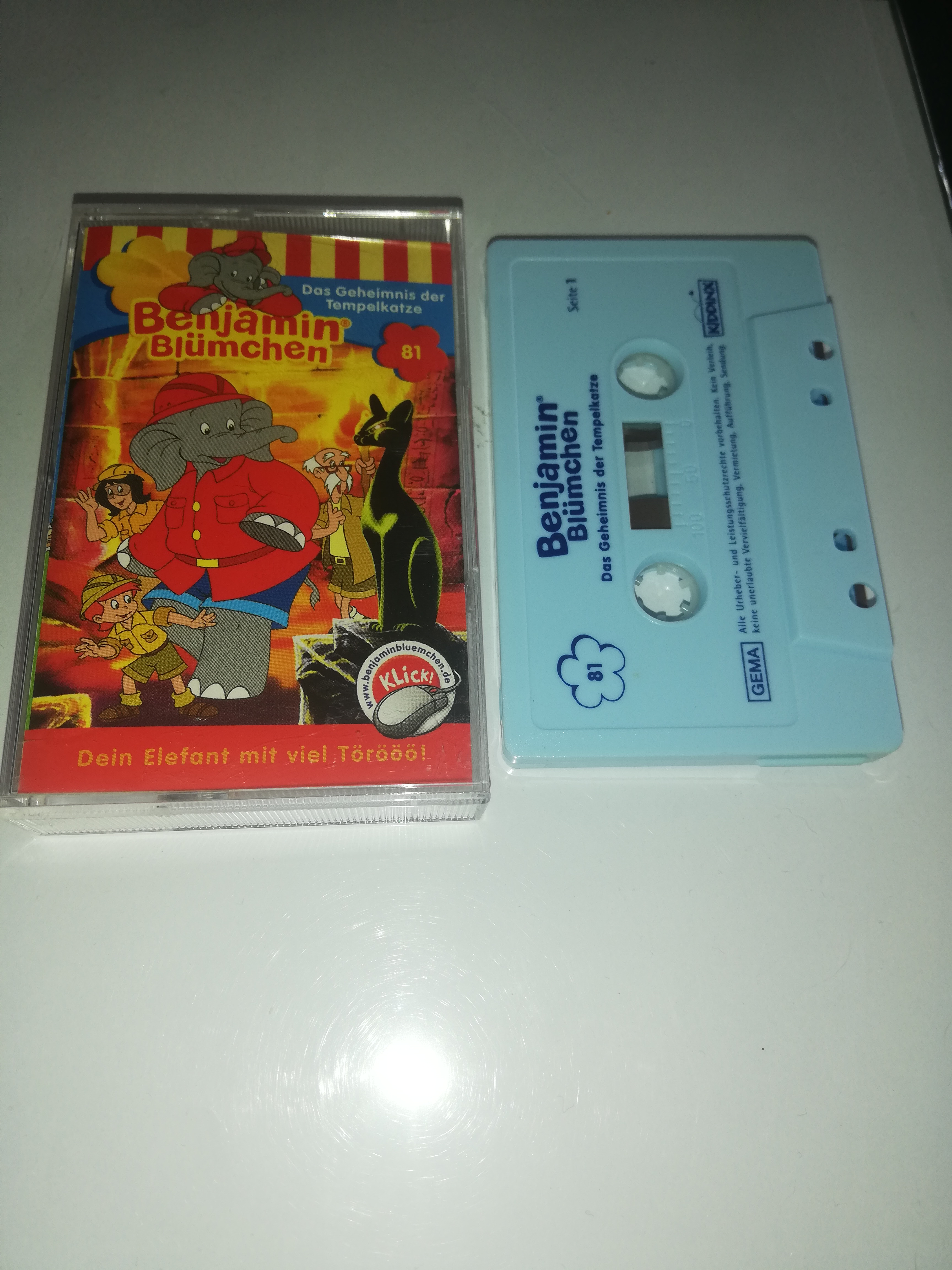 Benjamin Blümchen Folge 81 Kiddinx Das Geheimnis der Tempelkatze Weiß mit Blauen Druck 4.27581
