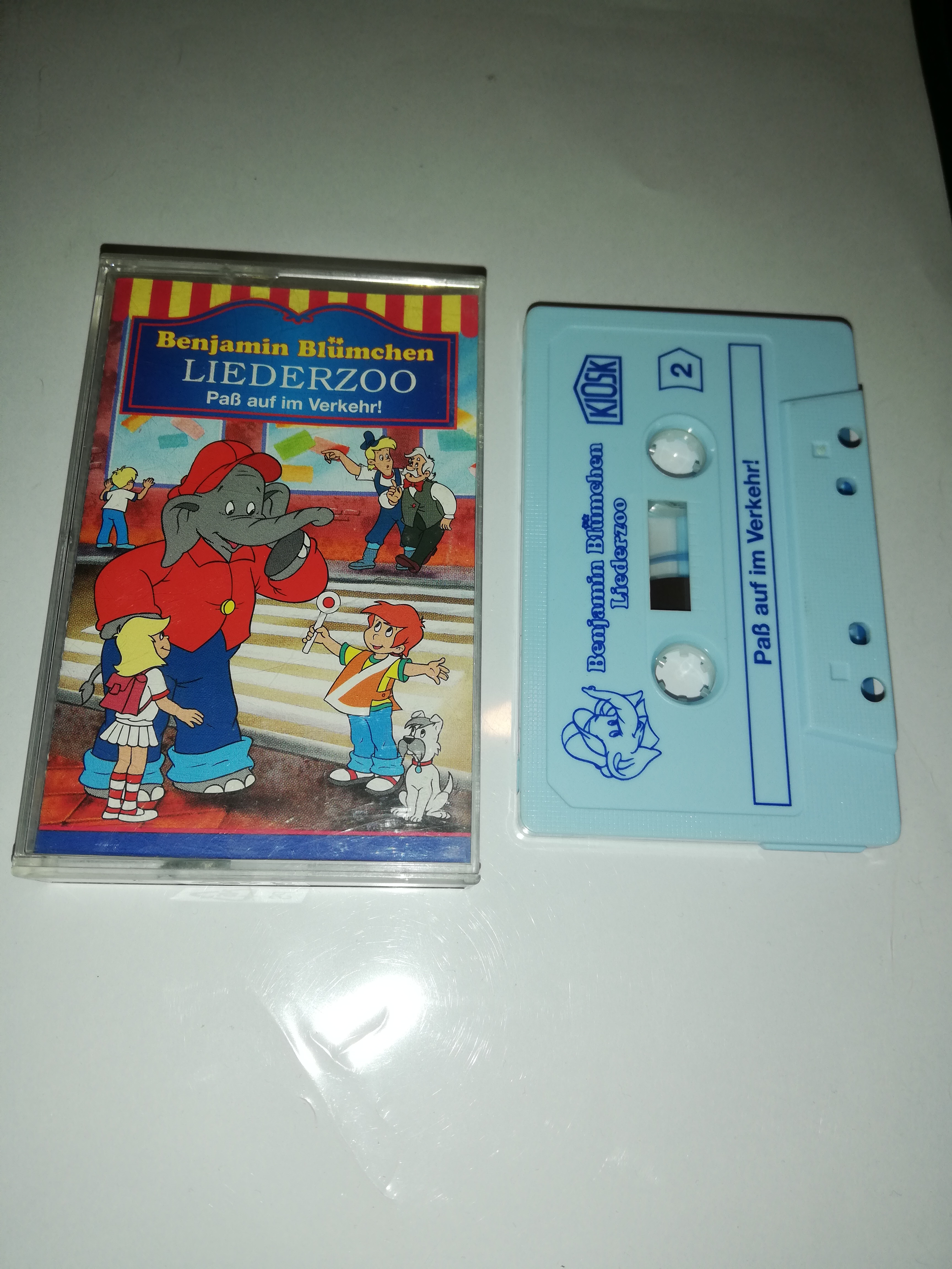 Benjamin Blümchen Liederzoo Paß auf im Verkehr Weiß mit Blauen Druck 4.27404