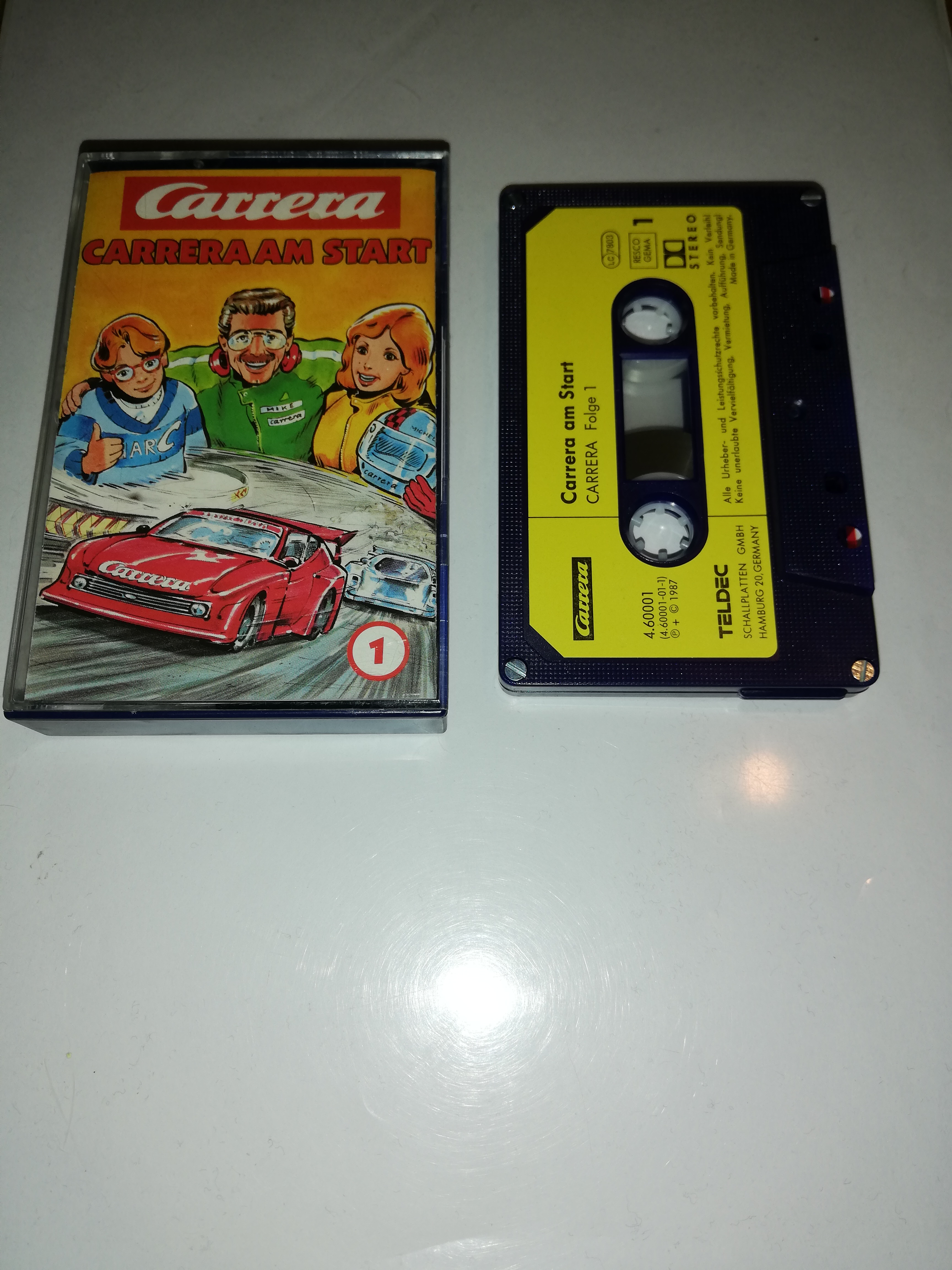 Carrera Folge 1 am Start 4-fach Silber geschraubt Blau mit gelben Aufkleber 4.60001