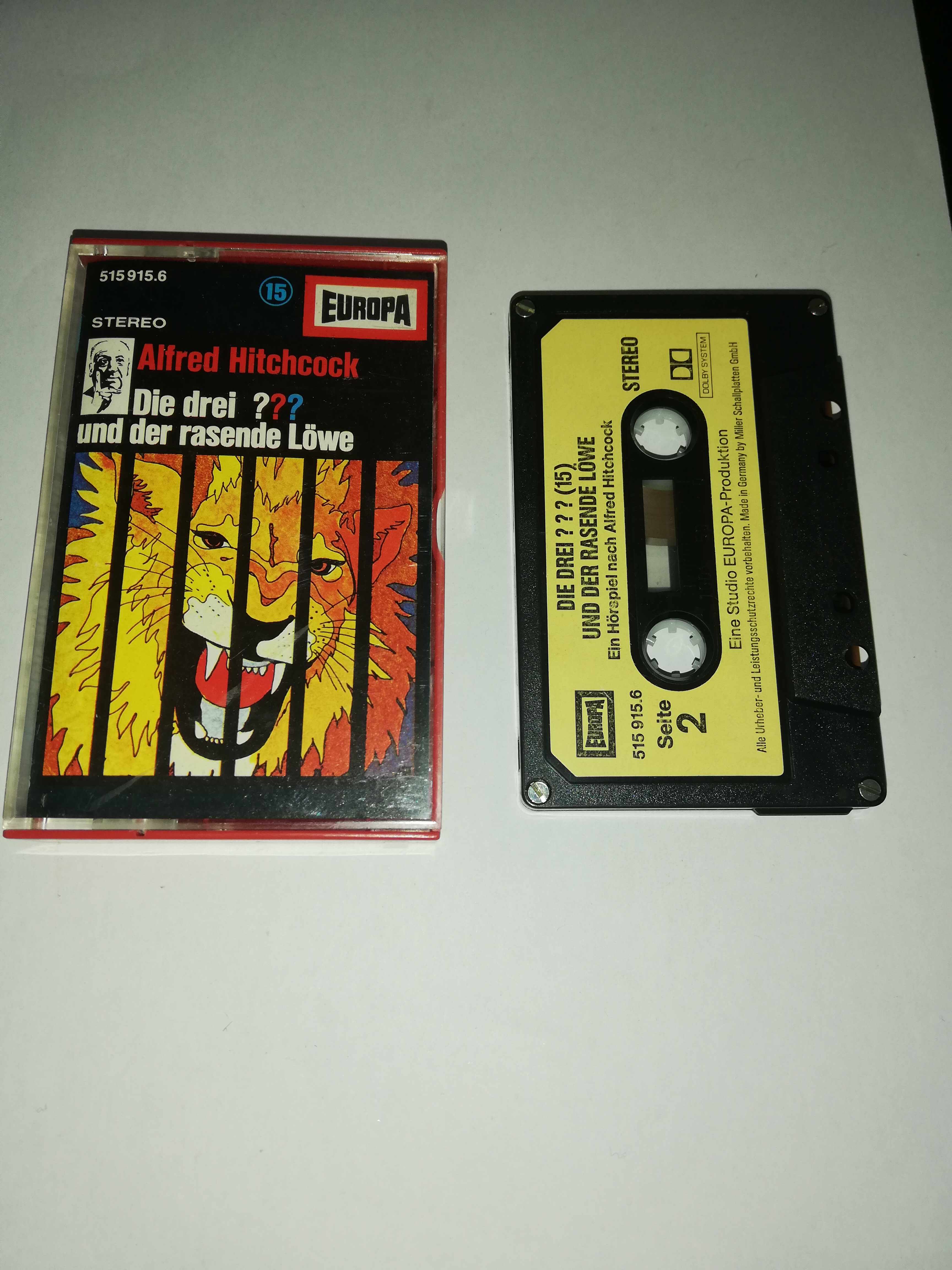 Die Drei Fragezeichen Folge 15 und der rasende Löwe 4-fach geschraubt Schwarz mit Gelben Aufkleber 515915.6(Titel Oben)