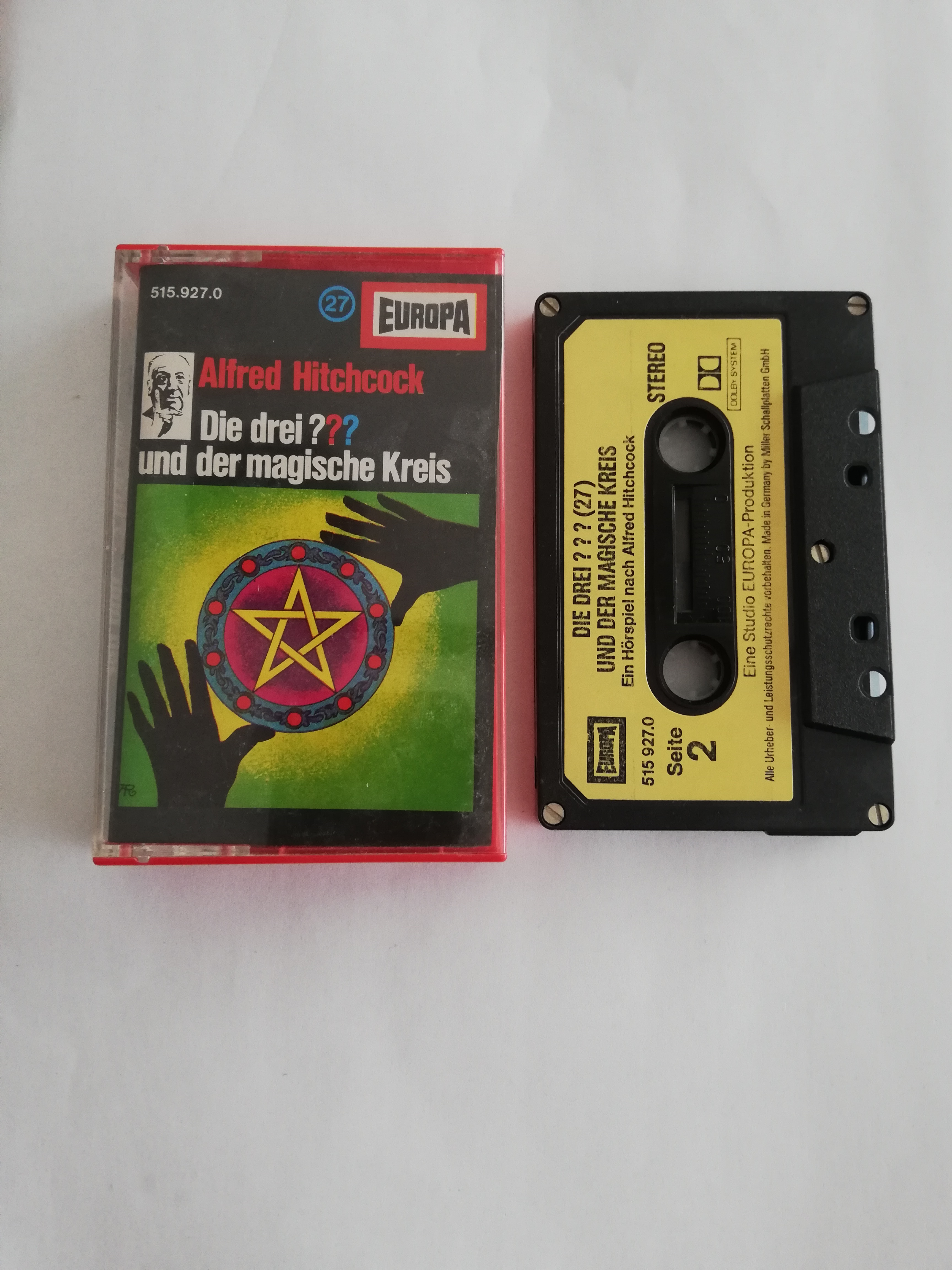 Die Drei Fragezeichen Folge 27 und der magische Kreis 5-fach Silber geschraubt Schwarz mit Gelben Aufkleber 515927.0 Europa(Titel auf MC-Label oben)