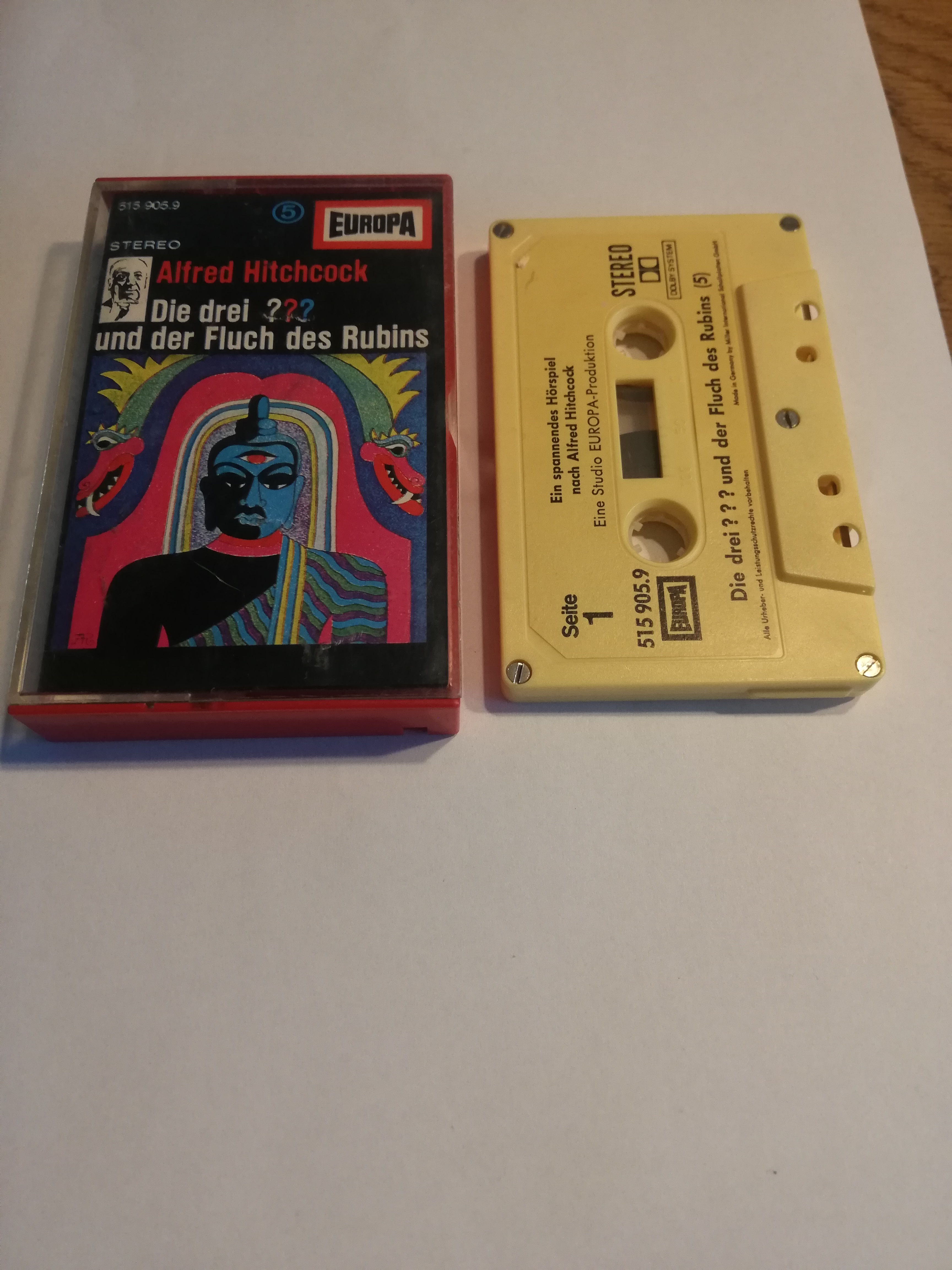 Die Drei Fragezeichen Folge 5 und der Fluch des Rubins 5-fach Silber geschraubt Gelb mit Gelben Aufkleber 515905.9 Europa (Innencover beschrieben und beschädigt)
