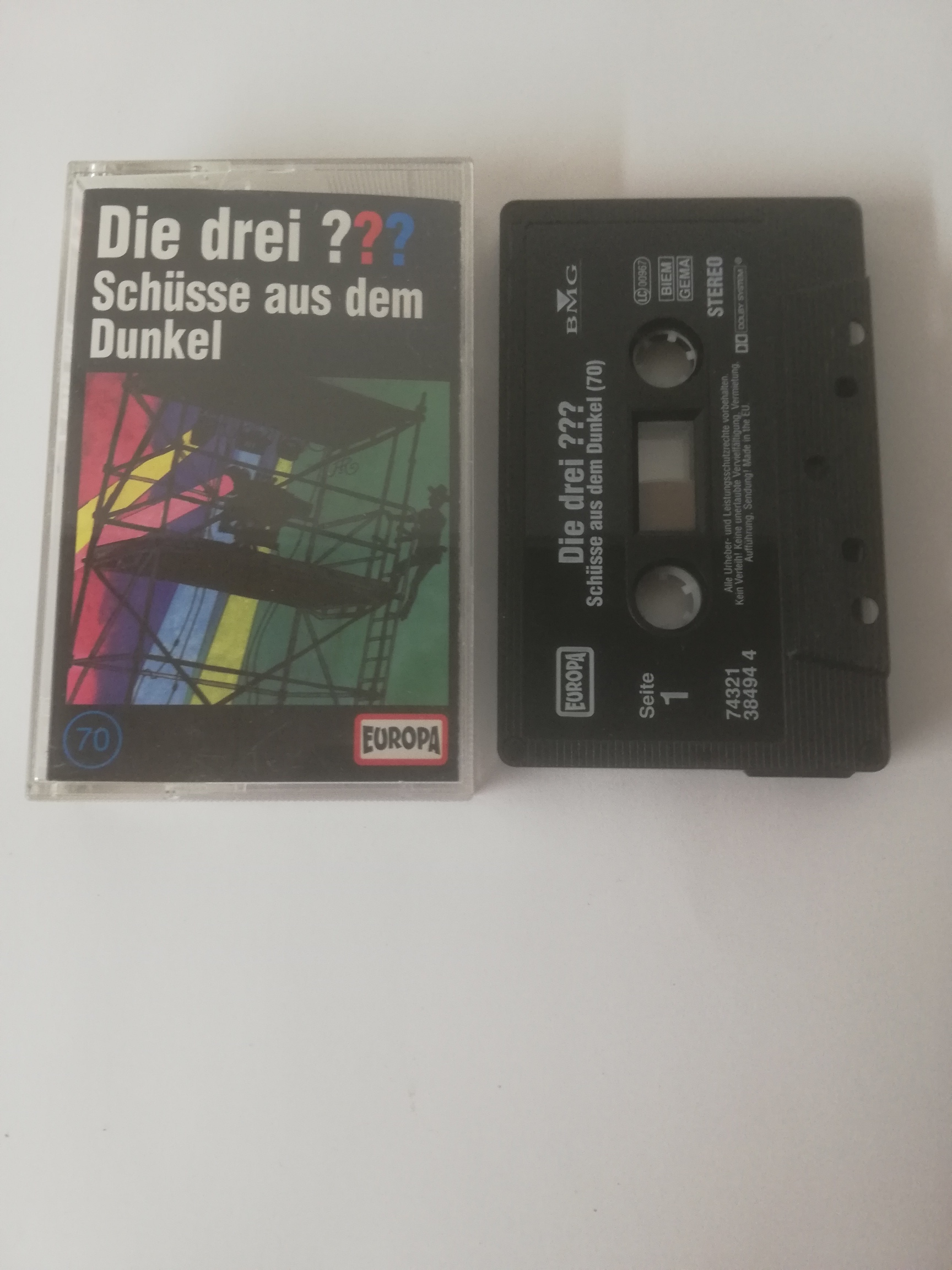 Die Drei Fragezeichen Folge 70 Schüsse aus dem Dunkel Schwarz 7432138494 4(Schriftzug Logo fehlt)