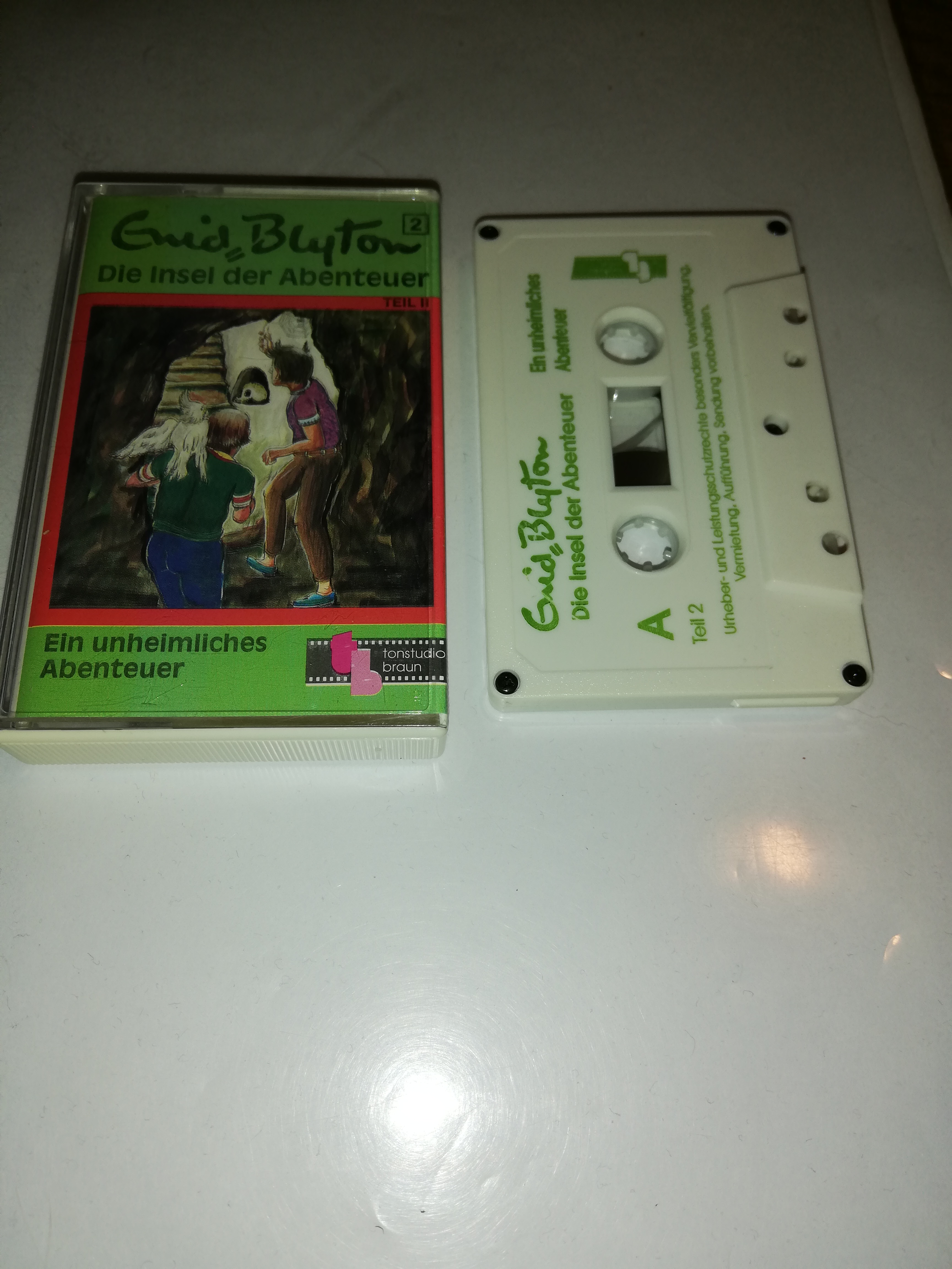 Enid Blyton Die Insel der Abenteuer Folge 2 Ein unheimliches Abenteuer 5-fach Schwarz geschraubt Weiß mit Grünen Druck Tonstudio Braun