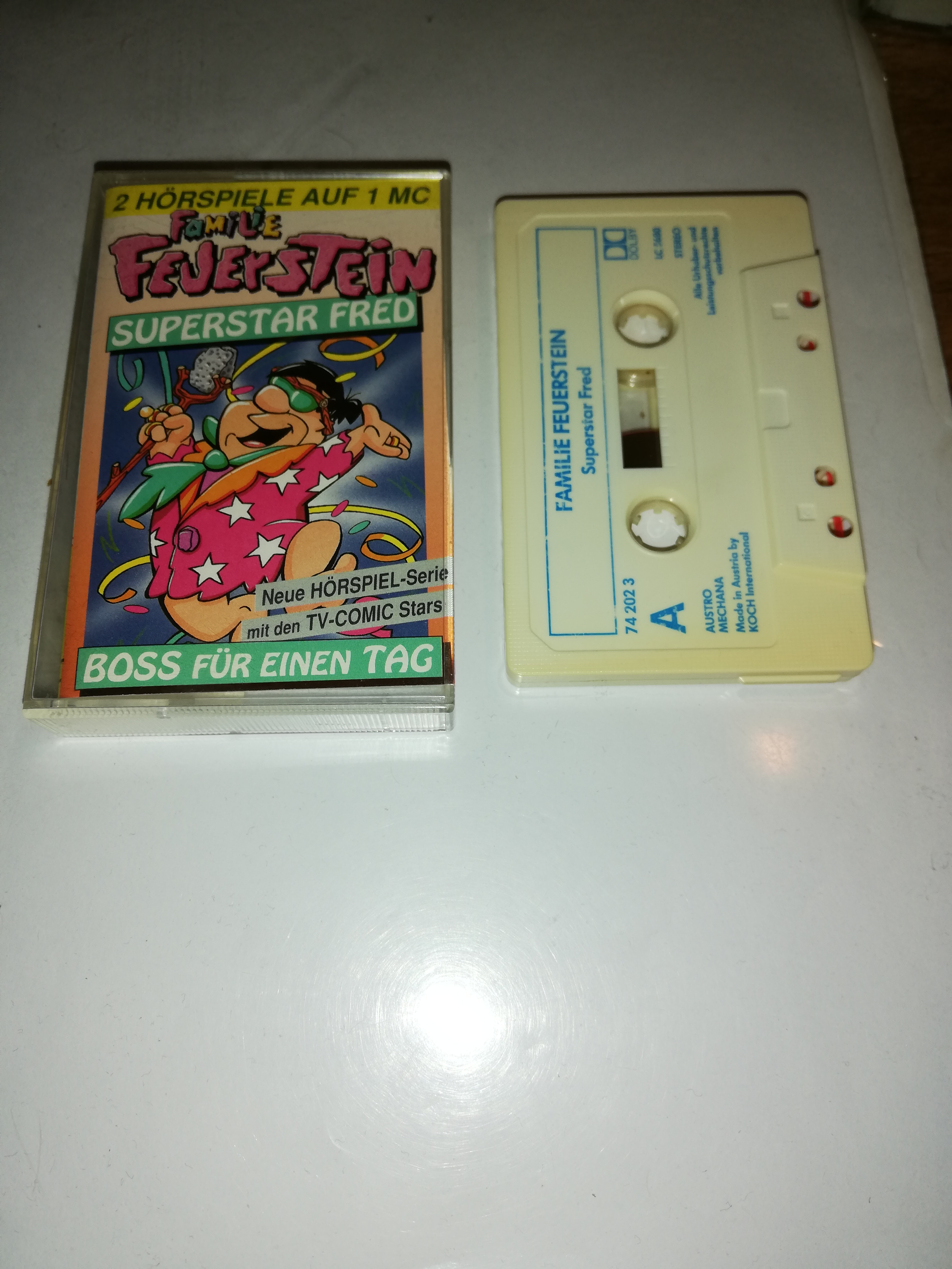 Familie Feuerstein Doppelfolge Superstar Fred/Boss für einen Tag Weiß mit Blauen Druck 250005(Kassette leicht vergilbt)