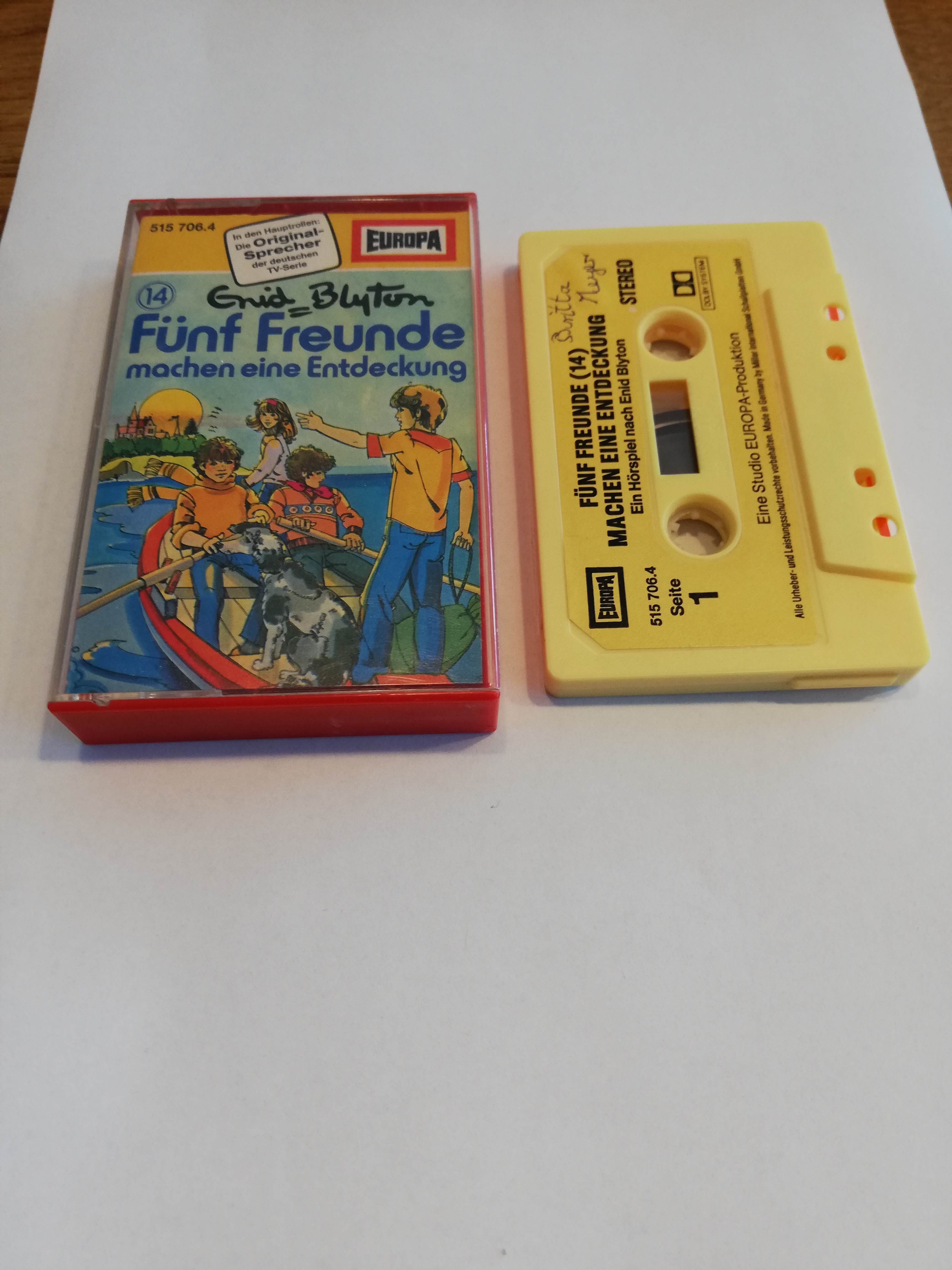 Fünf Freunde Folge 14 machen eine Entdeckung 5-fach Silber geschraubt Gelb mit Gelben Aufkleber 515706.4 Europa(Innencover leicht beschrieben +Seite 1 der MC beschrieben)