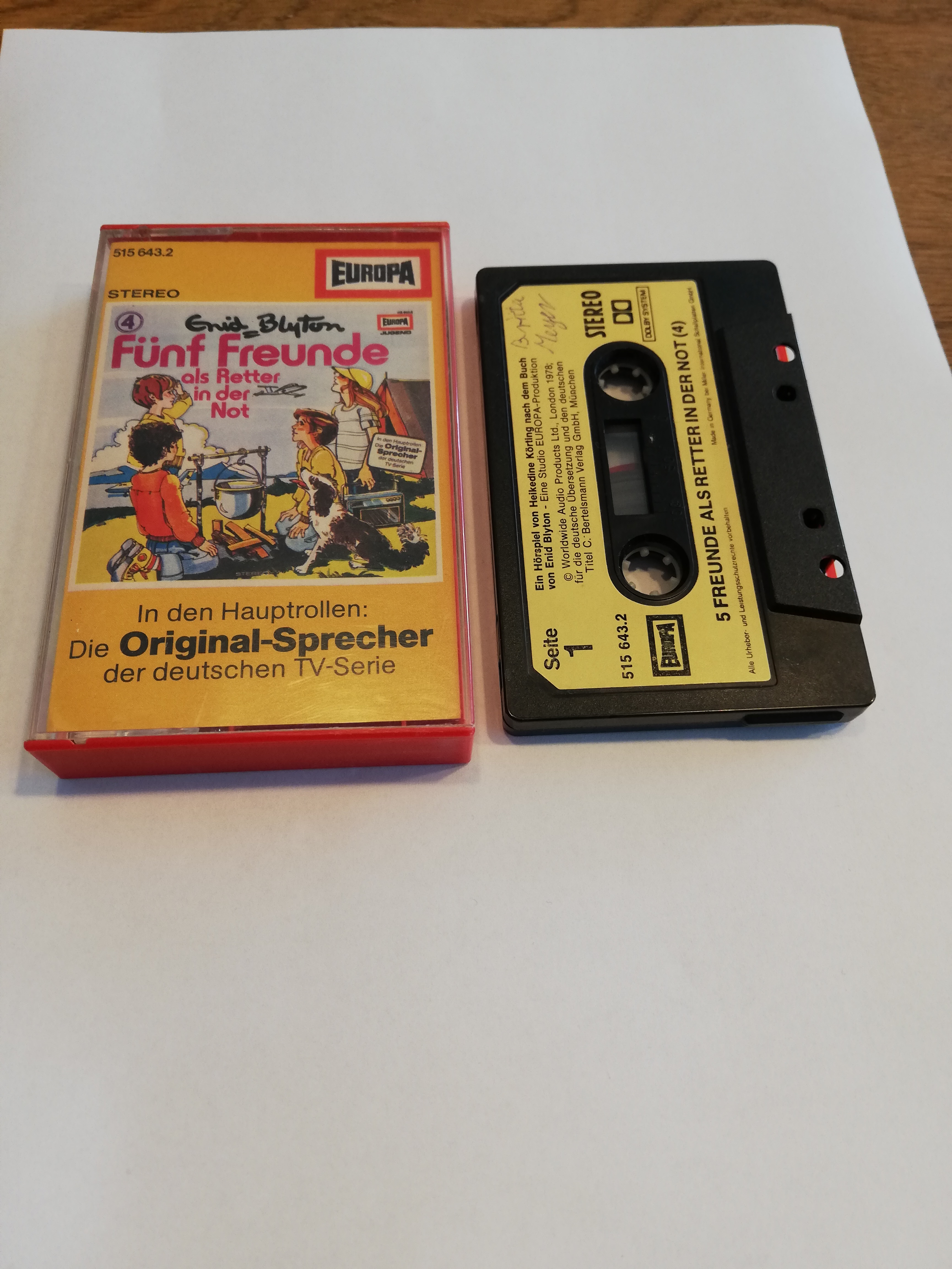 Fünf Freunde Folge 4 als Retter in der Not 5-fach Silber geschraubt Schwarz mit Gelben Aufkleber 515643.2 Europa(Innencover leicht beschrieben+Seite 1 der MC beschrieben)