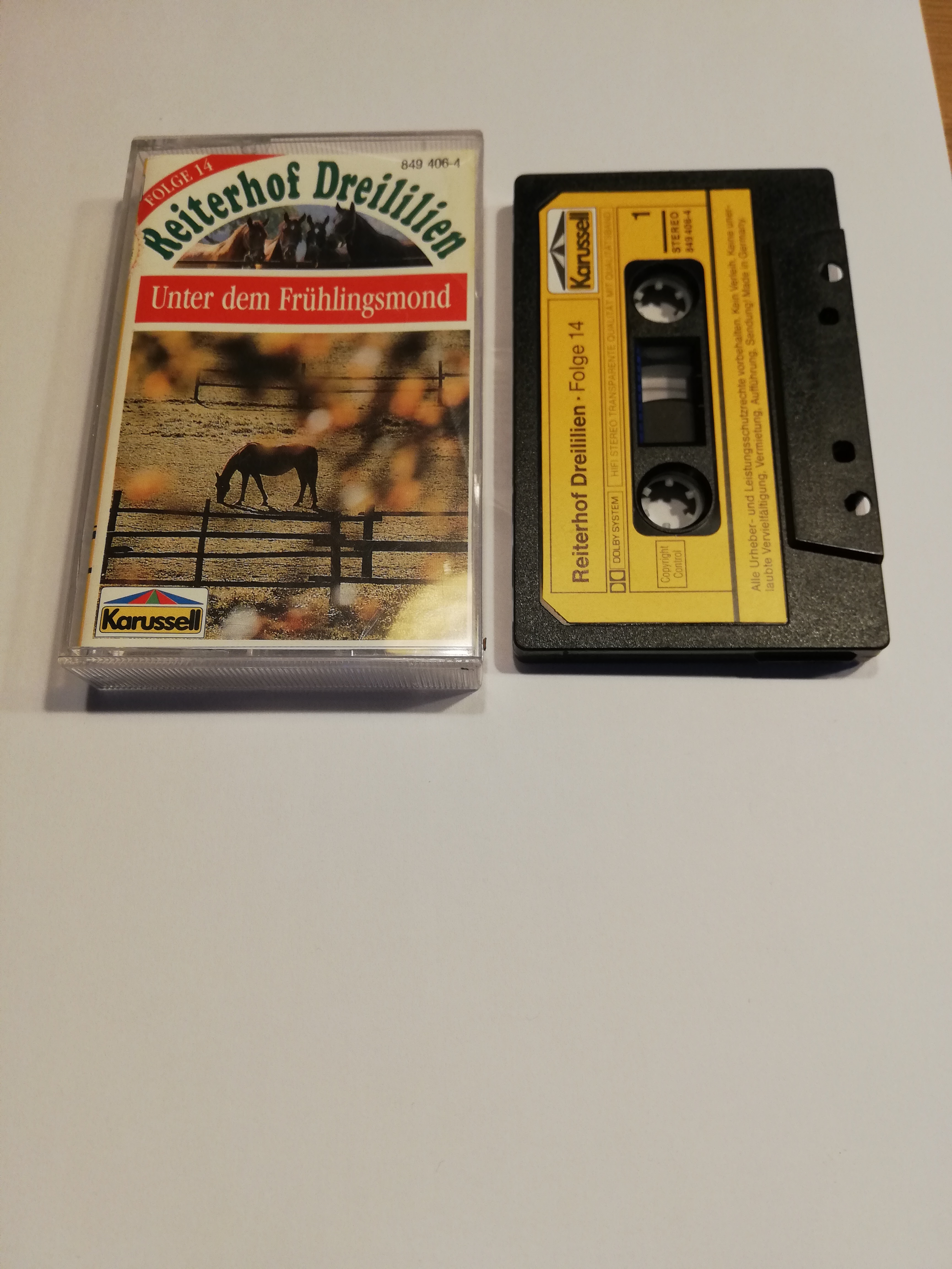 Reiterhof Dreililien Folge 14 Unter dem Frühlingsmond Schwarz mit Gelben Aufkleber 849 406-4 (Weiß Rotes Cover) Karussell