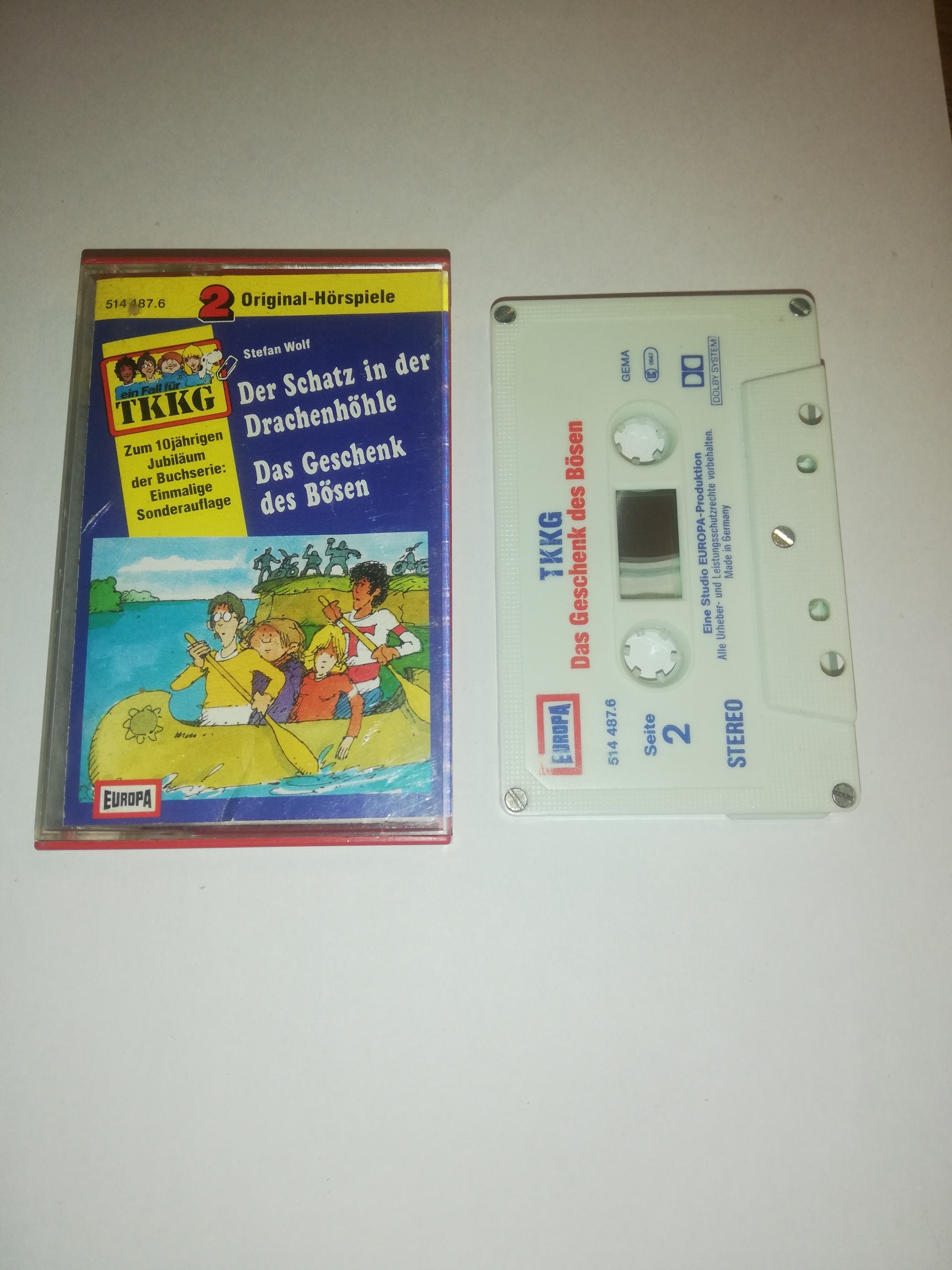 TKKG Doppelfolge Der Schatz in der Drachenhöhle/Das Geschenk des Bösen 5-fach geschraubt Weiß Blau Rot 514487.6 Europa(Innencover minimal bemalt)