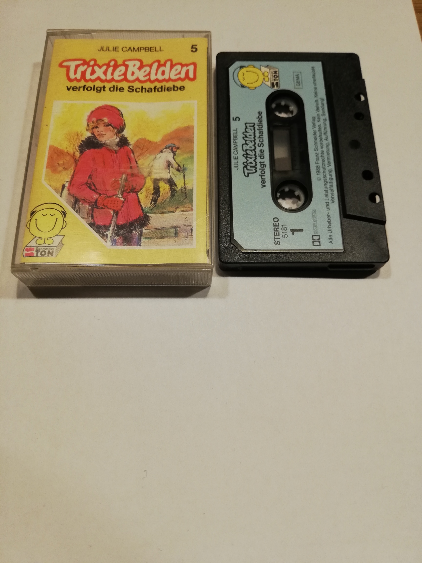 Trixie Belden Folge 5 verfolgt die Schafdiebe Schwarz mit Blauen Aufkleber 5181 Schneiderton