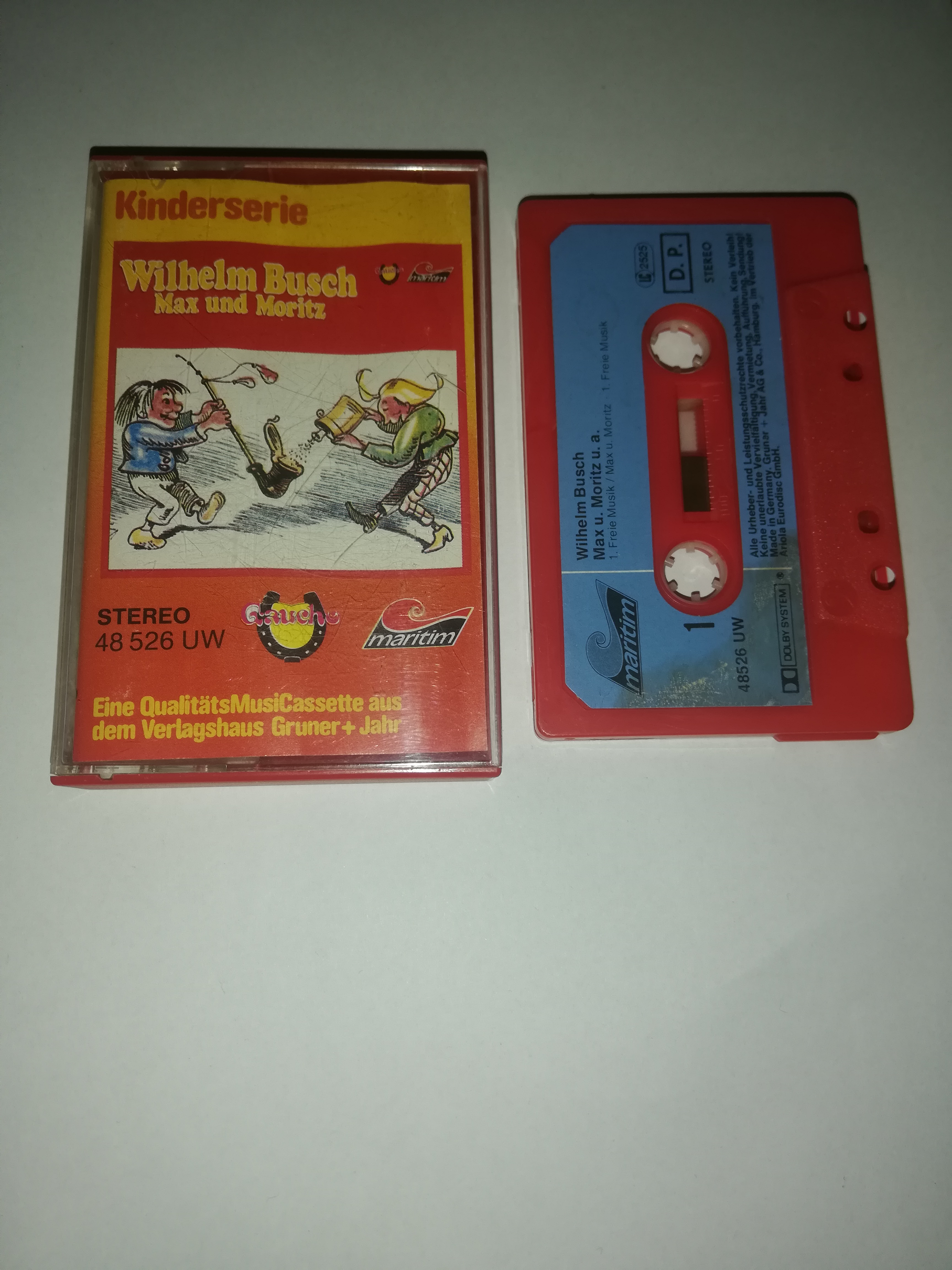 W.Busch Wilhelm Busch/Max und Moritz Rot mit Blauen Aufkleber 48526 UW Maritim(Fleck auf MC Seite 1)